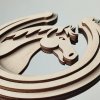 Dřevěná podkova je včetně hlavy koně vyrobena z několika vrstev kvalitní přírodní překližky. Je vysoká 15 cm a už při výrobě jsme jí vybavili očkem pro zavěšení na stěnu. Můžete si jí ale samozřejmě i jen někam opřít nebo položit.